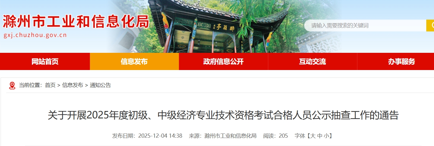 现将滁州市考区2025年度初级、中级经济专业技术资格考试成绩合格人员予以公示(名单见附件)。