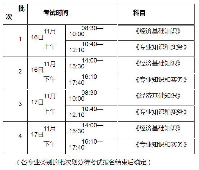 2024年中级经济师考试时间为11月16日-17日,考试按专业分两天上、下午4个批次实施。