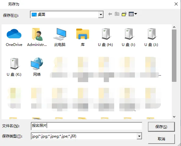 ④审核通过后,点击"保存照片文件"按钮,保存审核合格后的照片文件到桌面(默认文件名为:报名照片.jpg)。