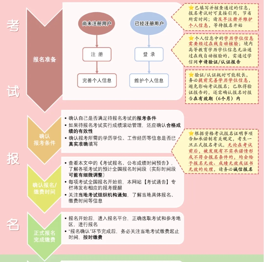 学历认证提前准备:2002年前毕业或学信网无法自动核验的学历,需提前申请《中国高等教育学历认证报告》(周期约10-20个工作日)。如报名截止前无法及时取得,可临时上传PDF格式的学历学位电子文件继续完成报名