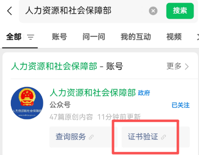 手机端:关注“人力资源和社会保障部”微信公众号→【证书验证】→扫描证书二维码即可查看官方认证信息。