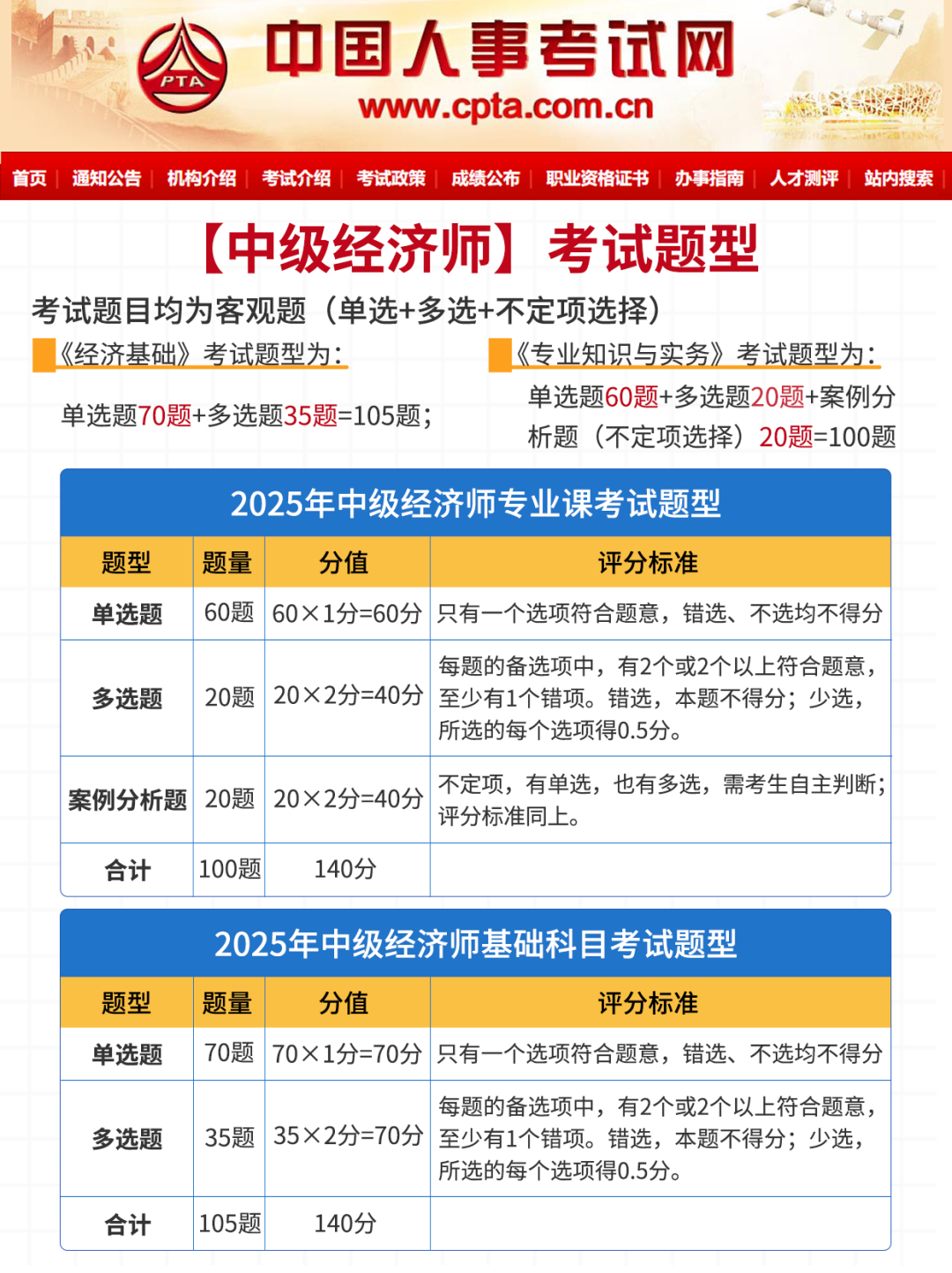 2025年中级经济师考试有明确的合格标准和评分规则: