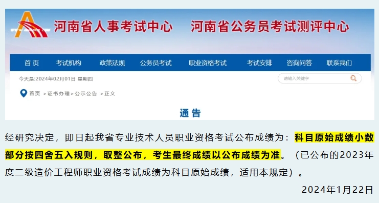 河南考区:四舍五入规则