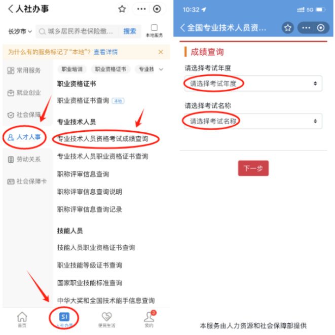 •支付宝端:打开支付宝APP,搜索"电子社保卡"小程序→点击"人社办事"→选择"人才人事"→点击"专业技术人员资格考试成绩查询"。