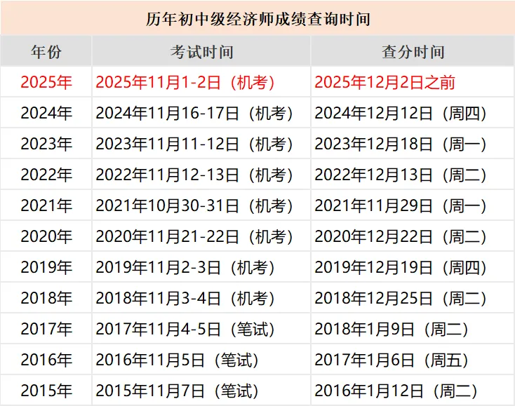 根据往年中级经济师成绩公布时间规律,2025年成绩查询时间有以下几个关键点: