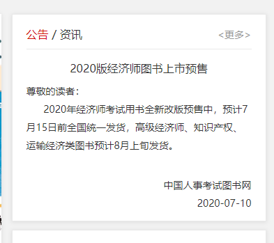2020年经济师专业改革,涉及到一部分专业的调整,所以很多小伙伴都想等新教材出来,再进行复习。7月10日中国人事考试图书网官网公布:2020年经济师考试用书全新改版,预计7月15日前全国统一发货。