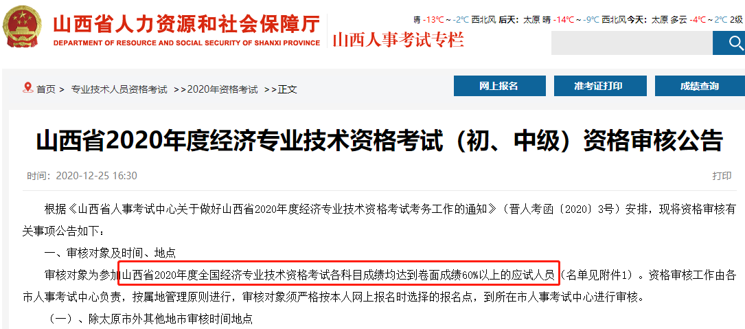 4、根据山西省2020年度经济专业技术资格考试资格审核公告知: