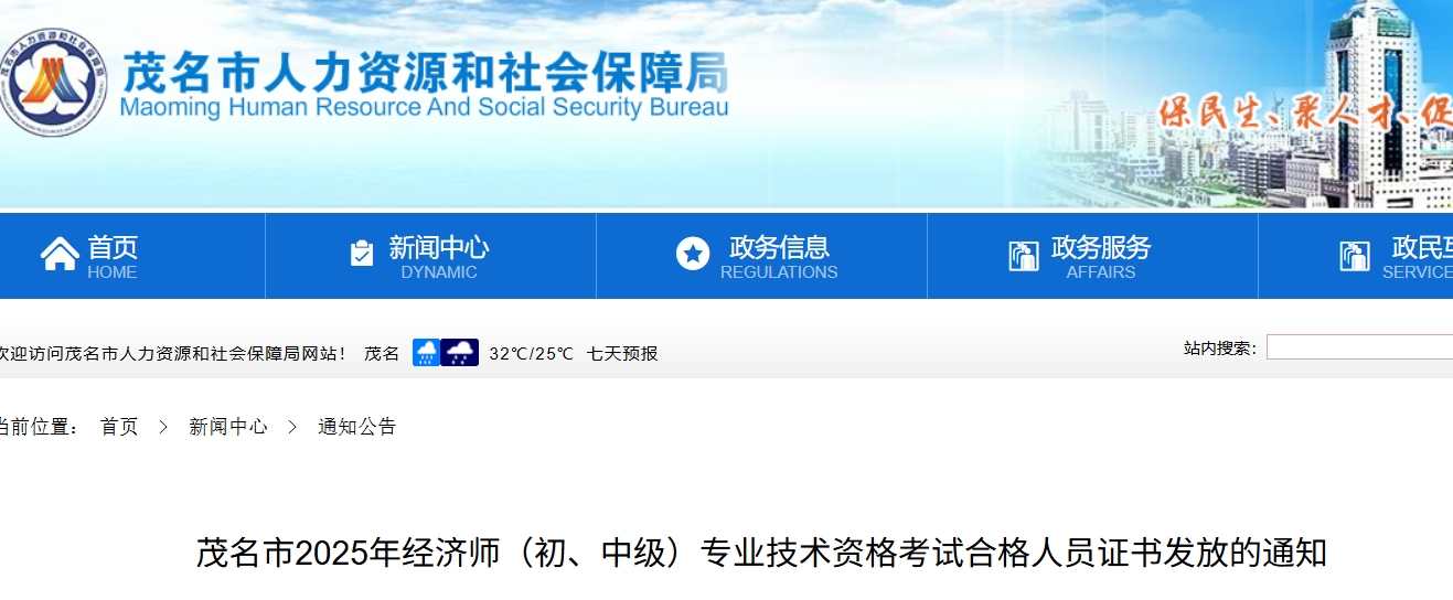 2025年茂名中级经济师证书发放工作已于1月5日正式启动,考生可在工作日指定时间前往办理。领证时间为周一至周五上午8:30-12:00、下午2:30-5:30,节假日休息。办公地址为茂名市油城十路6号大院(油城十路中段南侧)金源盛世1号楼二楼发证窗口。