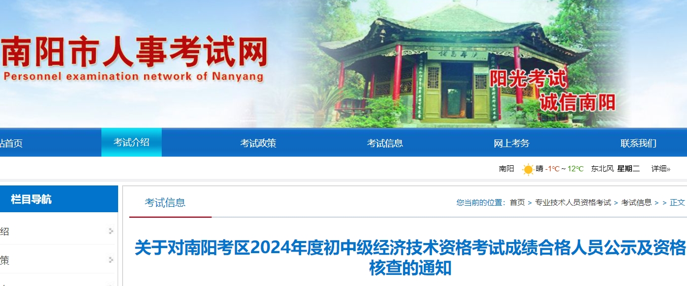 从南阳市人事考试网发布的《关于对南阳考区2024年度初中级经济技术资格考试成绩合格人员公示及资格核查的通知》得知,河南南阳2024年中级经济师考后核查时间截止12月25日,请合格人员按规定方式提交证明材料完成考后审核,顺利领取证书。
