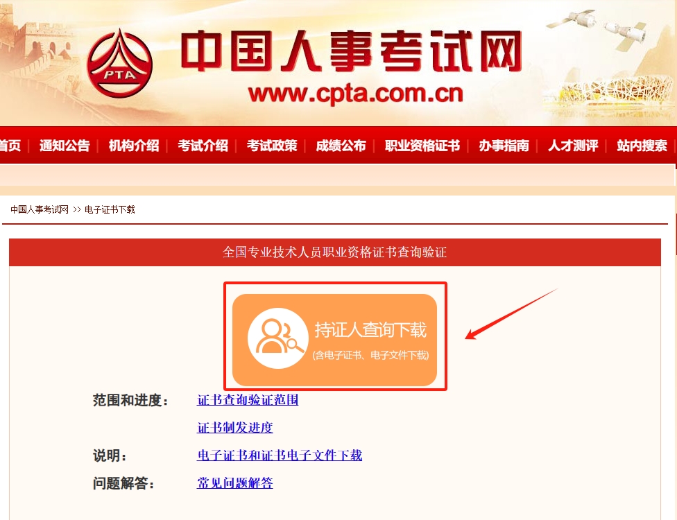 1、登录官网:访问中国人事考试网(www.cpta.com.cn),点击首页左侧"电子证书下载"入口,使用报名时的账号密码登录系统。
