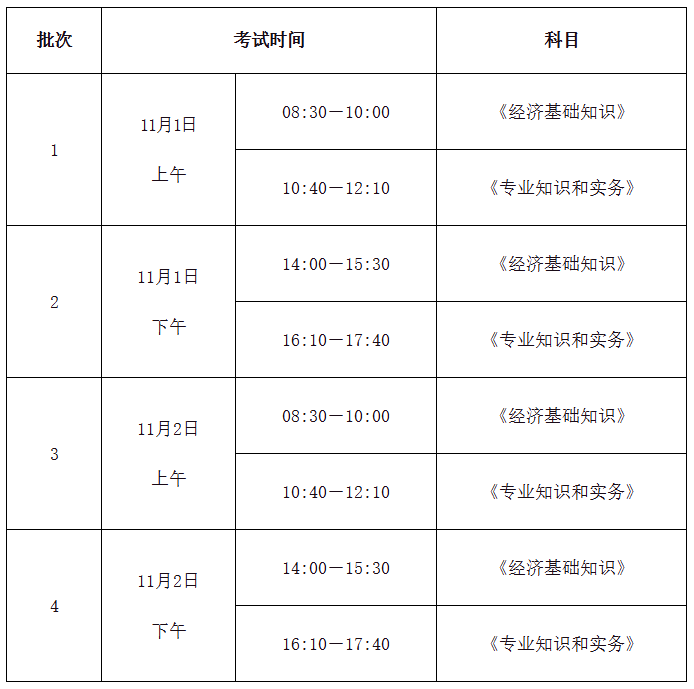 2025年吉林中级经济师考试时间为11月1日至2日,考试采用电子化机考模式,共分为4个批次: