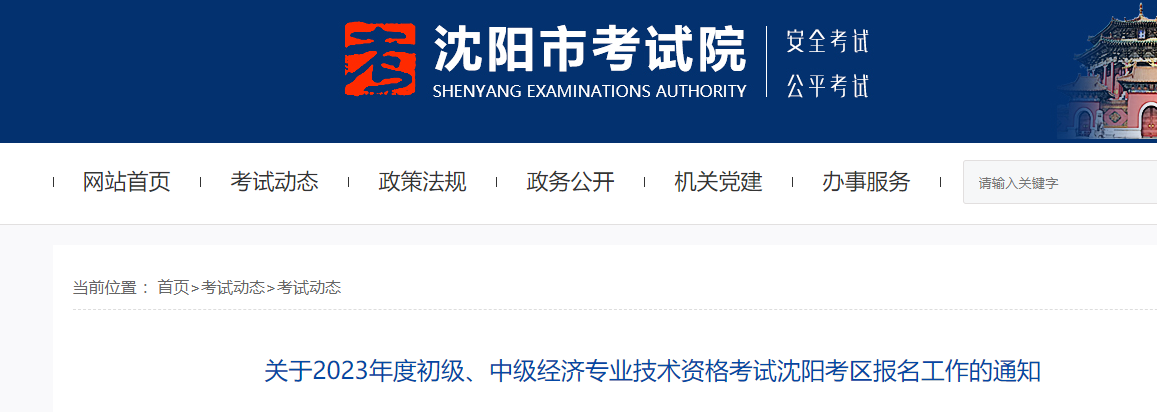 辽宁省人事考试中心《关于做好2023年度初级、中级经济专业技术资格考试考务工作的通知》(辽人考函〔2023〕17号)精神,为做好2023年度初级、中级经济专业技术资格考试沈阳考区报名工作,现将有关事项通知如下: