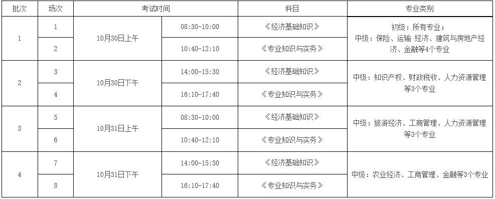 考试分2天上、下午4个批次实施。各级别及专业类别的具体考试时间和批次划分如下: