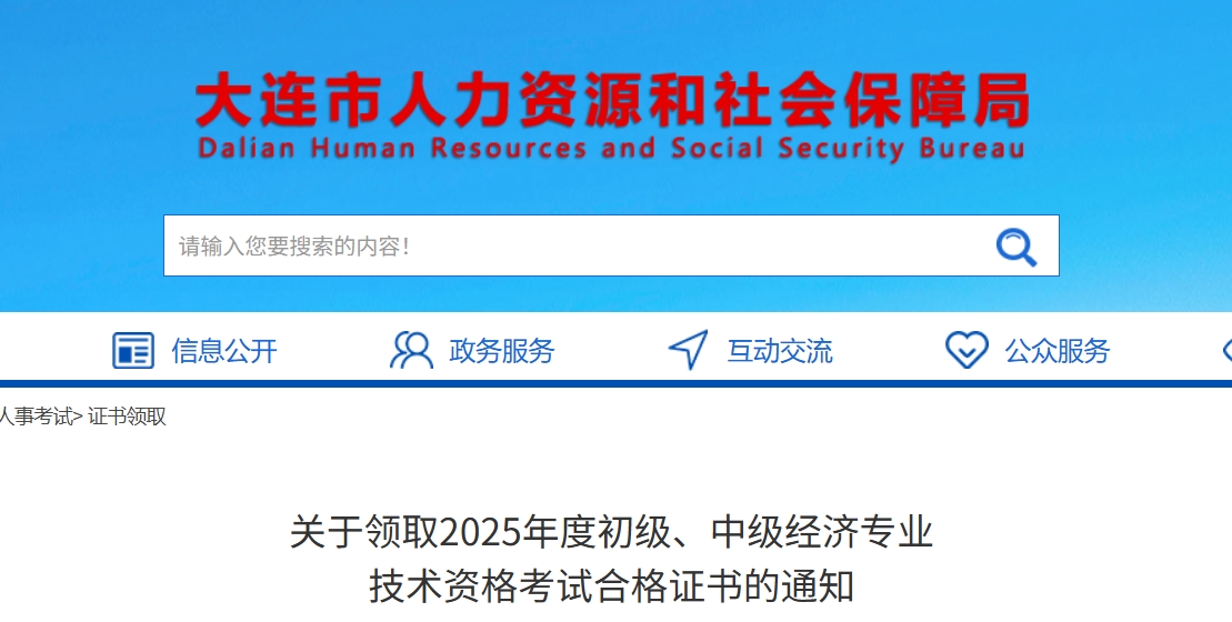2025年度初级、中级经济专业技术资格考试大连考区合格证书将于2026年1月6日起开始发放,现将有关事宜通知如下: