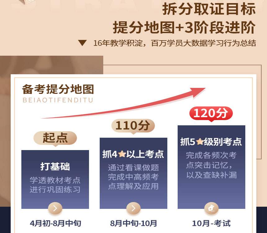 第一次考试或往年成绩不佳 学习没时间、自制力差 需要全面、系统知识梳理