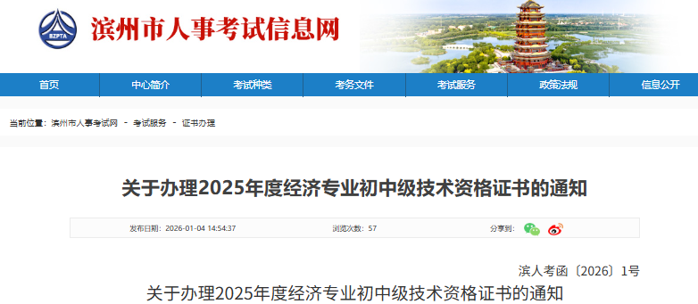 滨州市2025年经济专业初中级技术资格证书已下发至我市,现将有关事项通知如下: