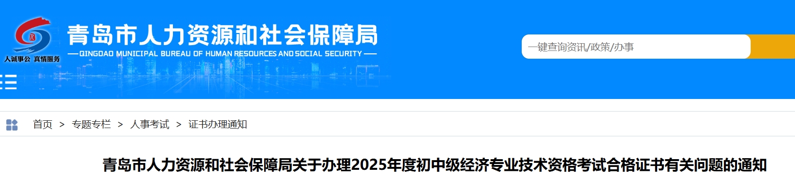 2025年度初中级经济专业技术资格考试合格证书已由山东省人力资源和社会保障厅下发至我市,现将证书办理事项通知如下: