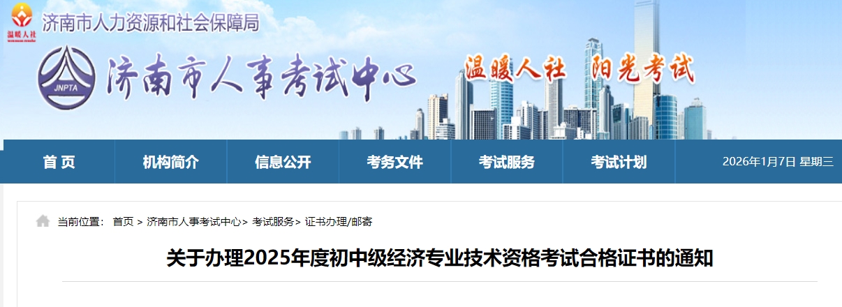 济南市2025年度未申请“证书直邮”考生的初中级经济专业技术资格考试合格证书已下发至我市,现将有关事项通知如下: