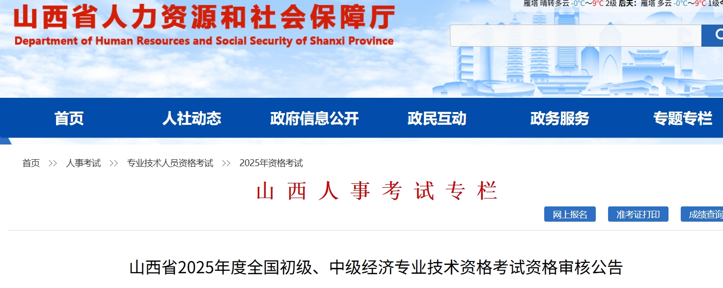 山西省2025年度全国初级、中级经济专业技术资格考试资格审核公告