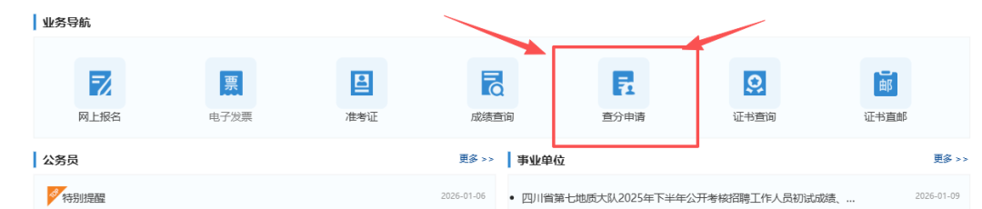 访问四川省人力资源和社会保障厅官网,进入"人事考试"专栏,点击"查分申请"栏目。使用报名时注册的账号密码登录,或通过身份证号、姓名等信息验证身份。