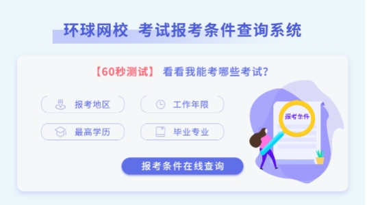 别自己算,环球网校“报考资格查询系统”1分钟帮你搞定!输入学历/工作年限等信息,即可在线智能检测,清晰明确告诉你“能不能报”。点击下图,立即免费自查,告别报考迷茫!