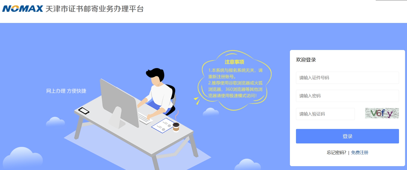 官方办理平台:天津市证书邮寄业务办理平台(https://tianjin.cptae.com/bas)是2025年天津中级经济师证书邮寄的唯一官方申请入口。考生也可通过天津市人力资源和社会保障局网站天津人事考试版块,点击页面右侧"网上办理证书邮寄"进入办理页面。