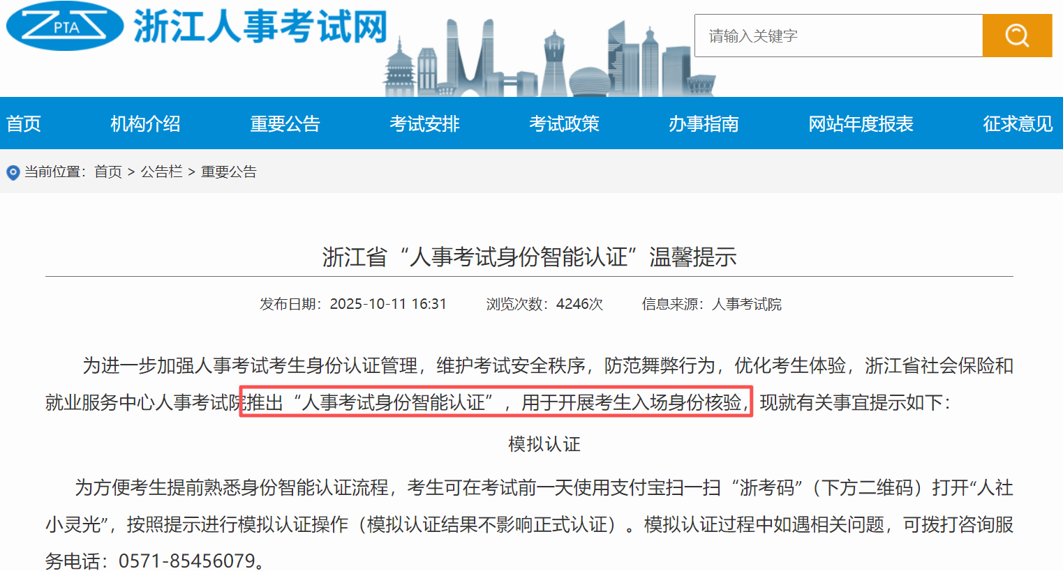 考试当天,请于每科目(场次)开考前1小时到达考点,在考点(考场)入口处使用支付宝扫一扫张贴的“浙考码”完成身份认证。
