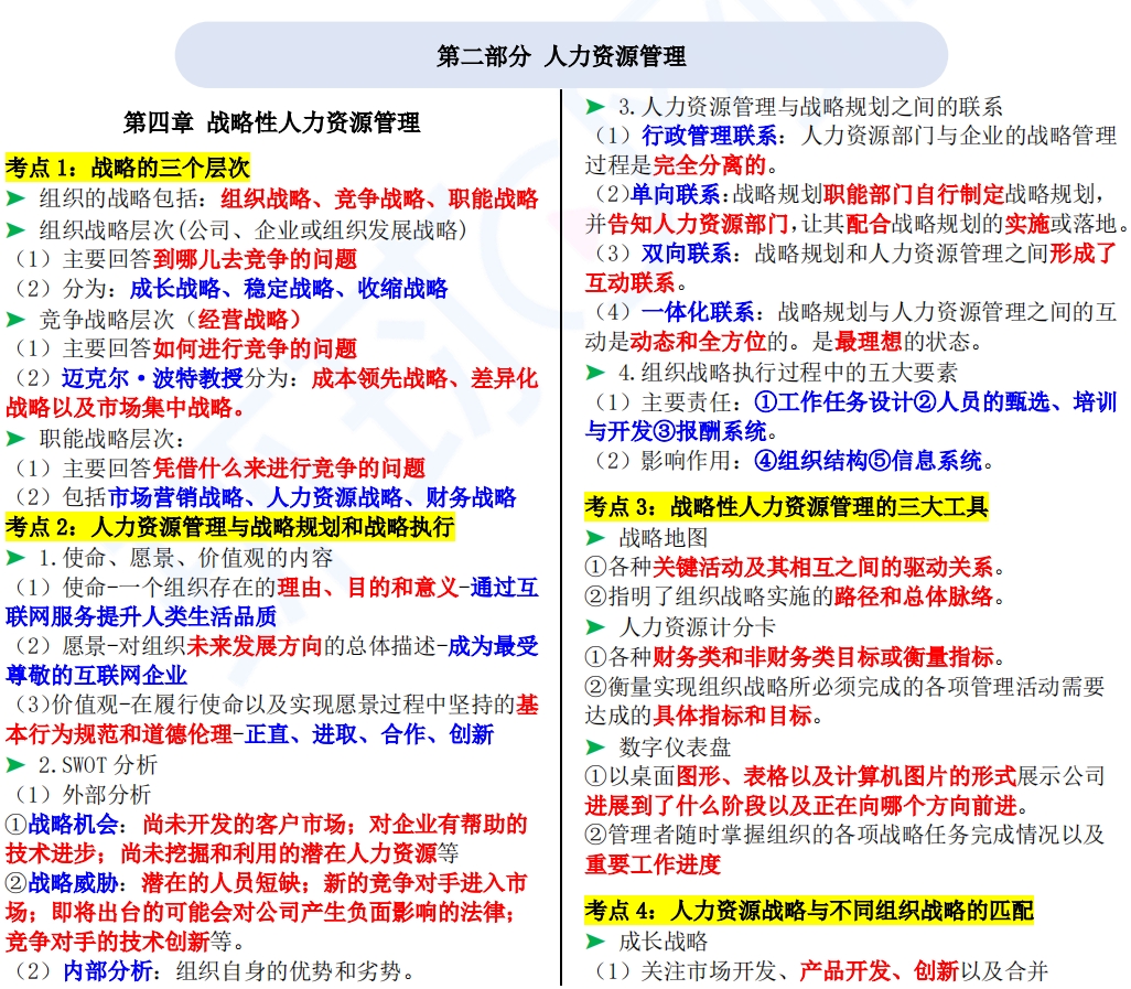 文档精准覆盖2025年新增考点(含AOM模型、人才盘点流程、数字化转型要点),采用高频考点梳理+记忆口诀+对比表格形式,将复杂理论转化为易懂内容。另附实战真题解析,助你快速掌握命题规律。