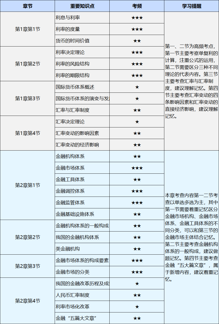学习建议:重点记忆金融市场机构的分类,理解金融"五大文章"新内容