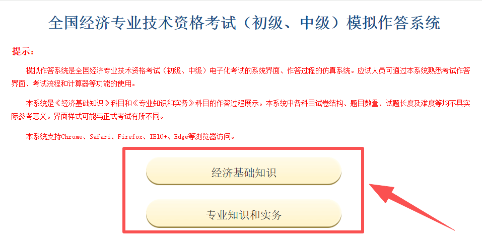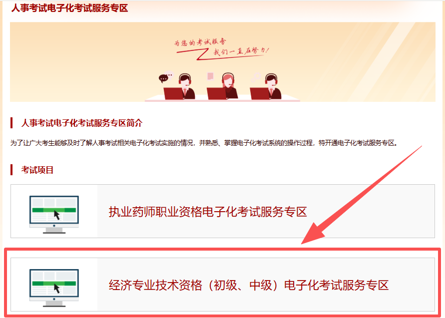 2. 选择"经济专业技术资格(初级、中级)电子化考试";
