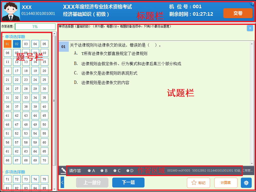 特别需要注意的是,系统内置计算器提供科学型模式,支持乘方、开方、对数等复杂运算,考生需提前练习操作。答题时单选题点击选项前圆圈,多选题点击方框,修改答案可直接重新选择。