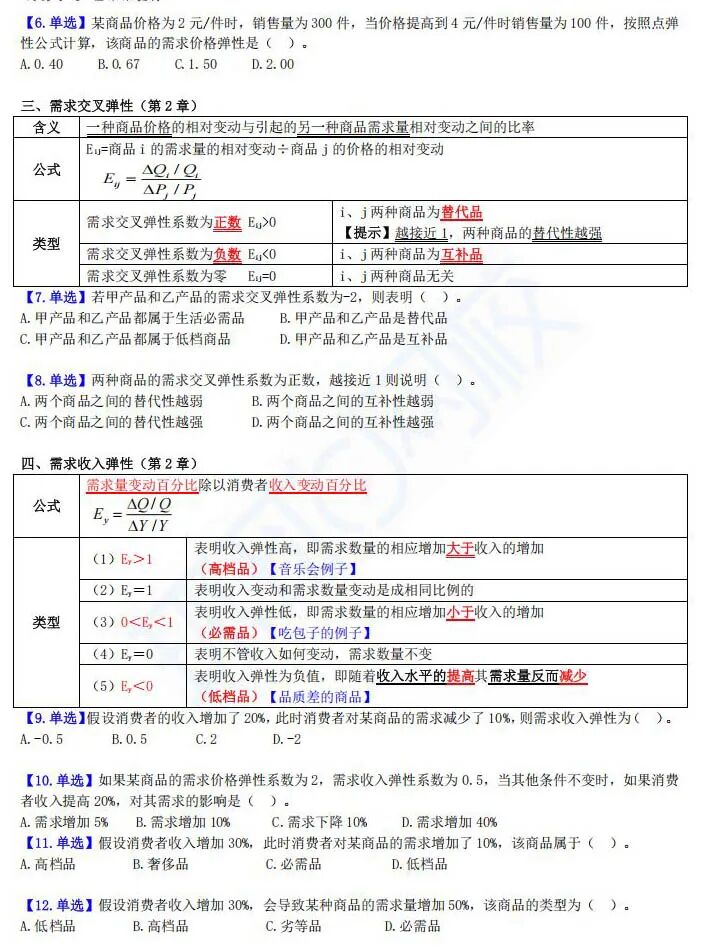 核心公式:如GDP核算、弹性系数、边际成本等,配套真题示例讲解;