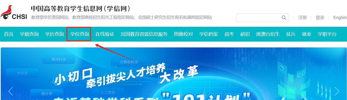 1、登录学信网,进入"学位查询"