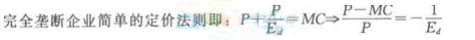 由该式可知,一个垄断企业索取的价格超过边际成本的程度,受制于需求价格弹性。当需求价格弹性较低,即 Ed 的绝对值较小时,垄断者可以确定较高的价格;但是,随着需求价格弹性的增大,Ed 的绝对值扩大,则价格将非常接近于边际成本。
