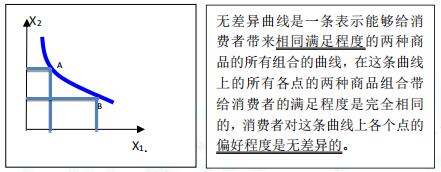 【提示 1】无差异曲线从左向右下倾斜,斜率为负,这是由商品边际替代率递减规律决定的。