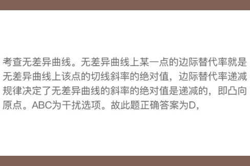 D、两种商品边际替代率等于预算线的斜率