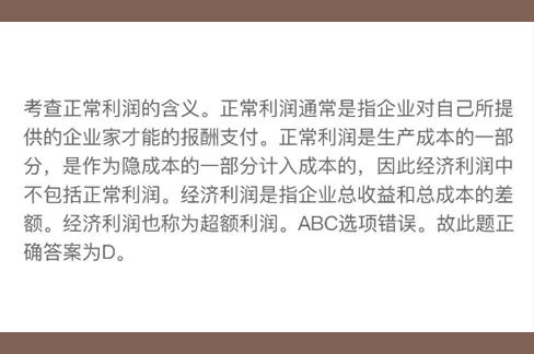 B、企业对自己所提供的企业家才能的报酬支付称为正常利润