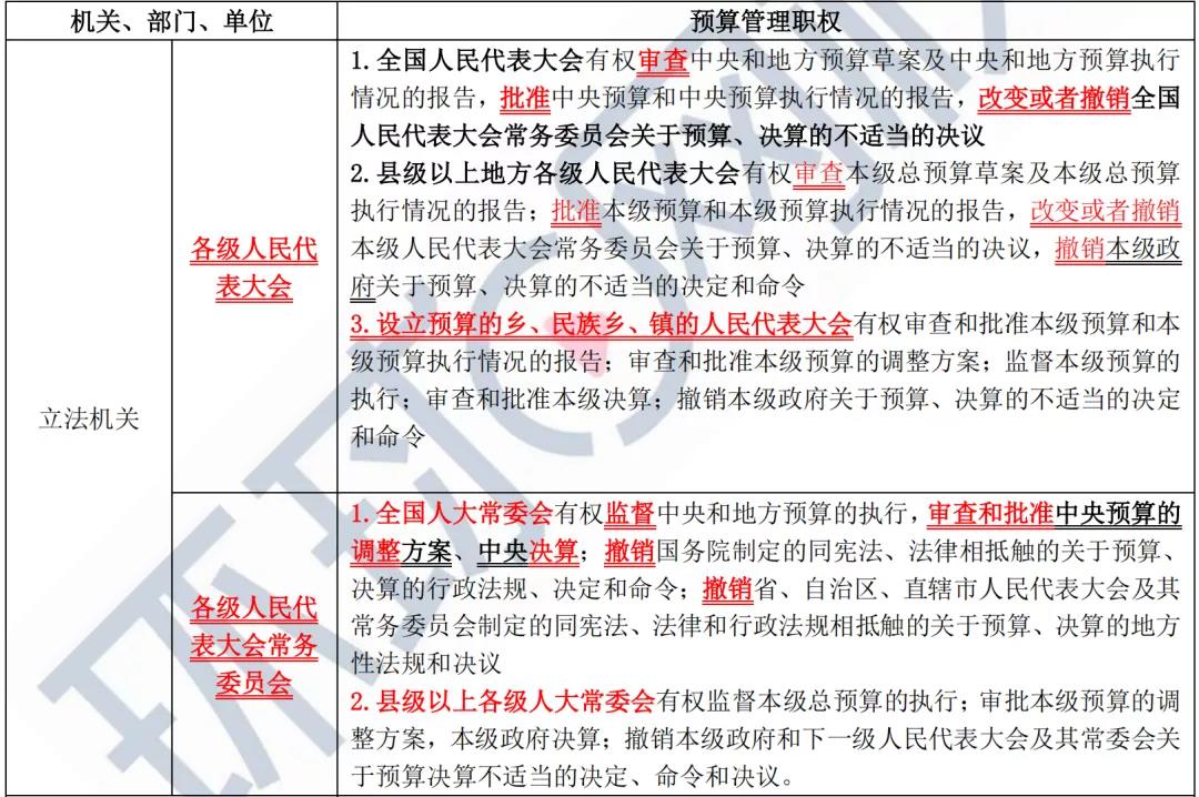 《中华人民共和国预算法》对立法机关、各级政府、政府财政主管部门和预算执行部门、单位的预算管理职权做了明确规定。